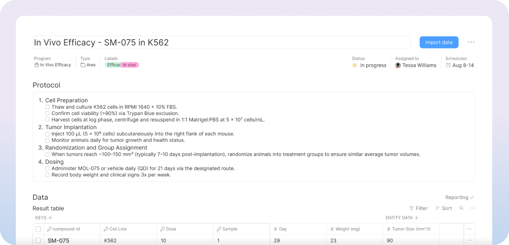 Easy to use, compliant ELN solution - enhanced with project management and powerful data dashboards